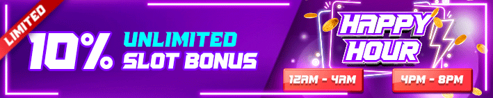 HAPPY HOUR 10% UNLIMITED SLOT BONUS